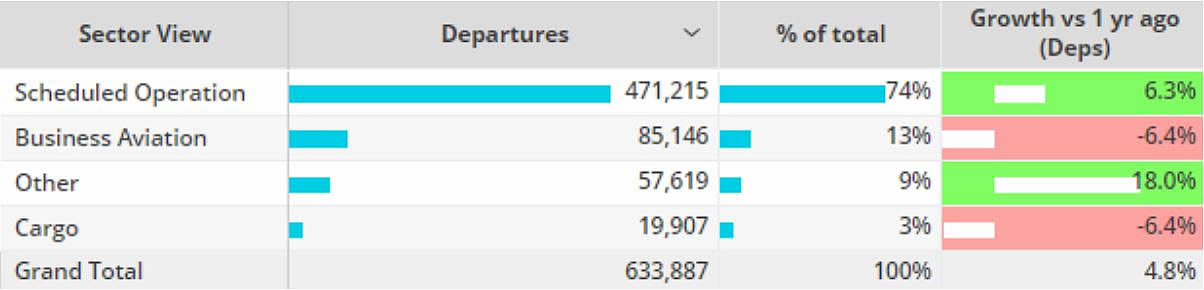 Scheduled airline sectors in Week 2 were 6% ahead of the same dates last year, whilst cargo operatored sectors were down 6% compared to comparable 2023.