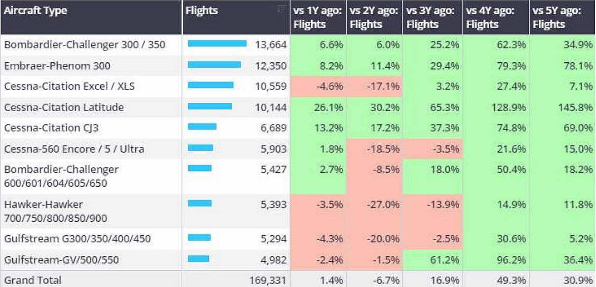 So far this month activity in the United Arab Emirates has fallen 17% year-on-year, although over 100% growth compared to 2019. Bizjet sectors in Saudi Arabia falling even further, departures are down 35% year-on-year. Elsewhere outside the US and Europe, China is seeing triple digit growth vs last year and 5 years ago, Australia seeing a 35% increase in bizjet activity compared to last year.
