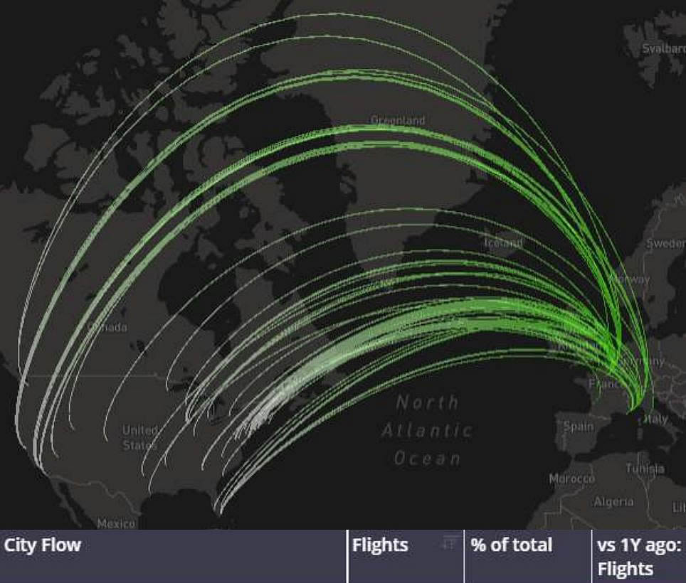 US Bizjet city flows, US - France, Week 30 2024 (% change refers to change vs same dates last year).
