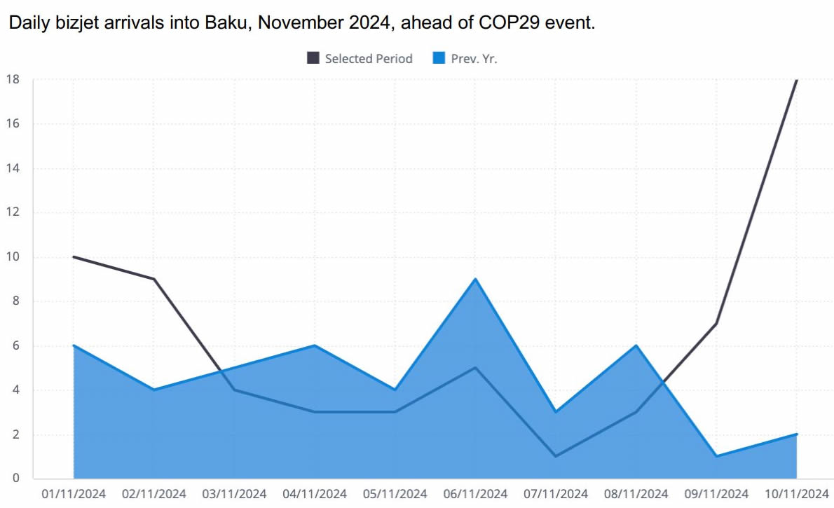 Daily bizjet arrivals into Baku, November 2024, ahead of COP29 event.