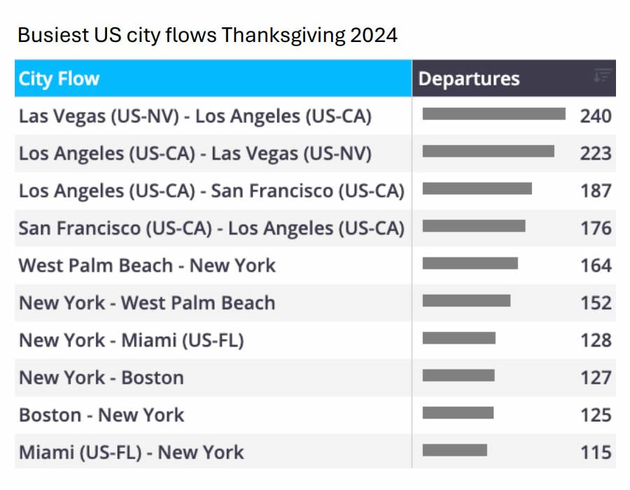 The United States is poised for robust business jet activity during Thanksgiving week 2025 (24-30 Nov), with projections indicating approximately 48,000 business jet flights.