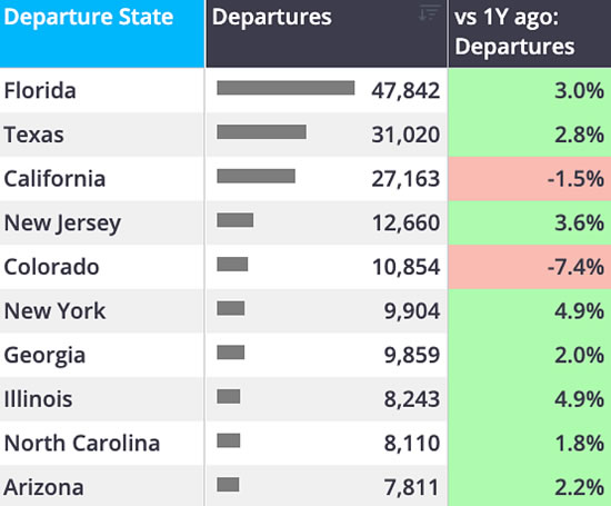1 December-11 January business jet activity by US state.