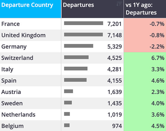 1 December-11 January business jet activity by European countries.