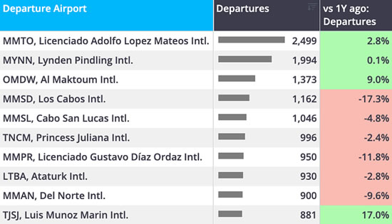 1 December-11 January business jet activity by ROW airports.