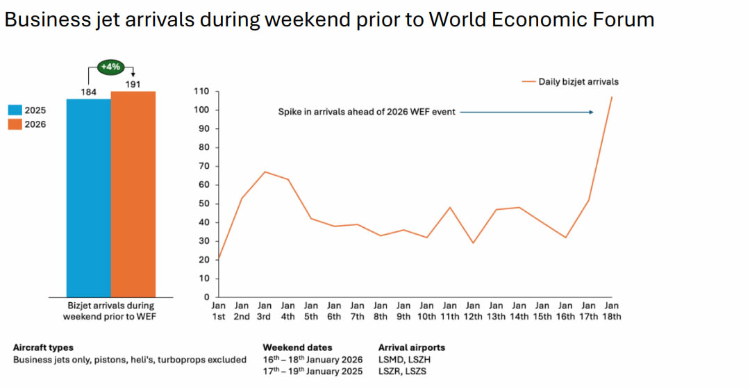 Highlight of the Week: Davos arrivals peak at 110 aircraft ahead of forum opening
