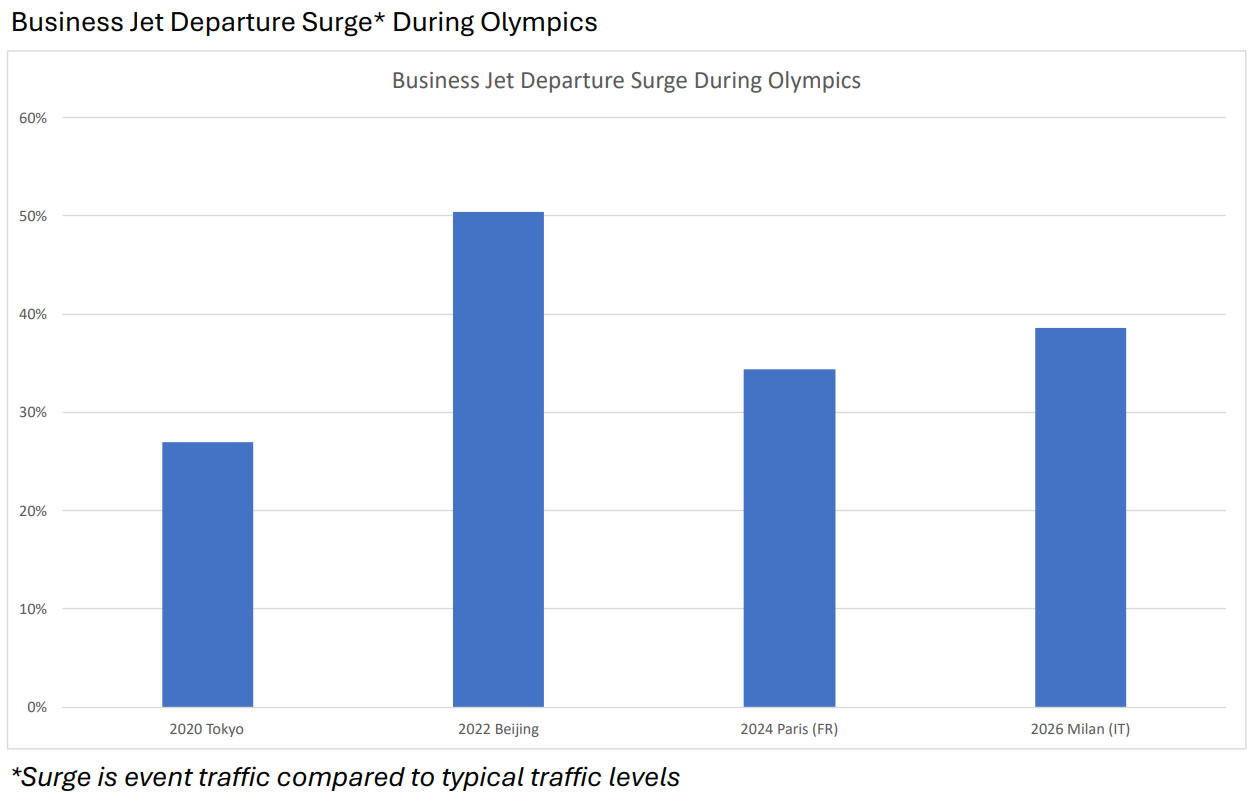 “The Milan-Cortina Olympics delivered a clear and measurable boost to Italian bizjet traffic, continuing a pattern we see at almost every marquee sporting event.