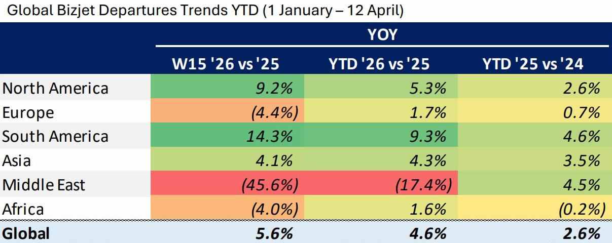 Global Bizjet Departures Trends YTD (1 January-12 April).